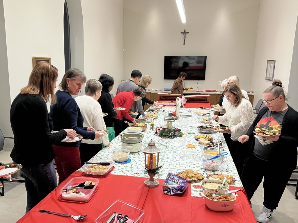 On December 3rd, 2025, the ladies in our CWL, and other women in our community came together to share some delicious food, deserts and beverages at our Christmas Potluck. Following our social dinner, many ladies partook in creating a beautiful floral centerpiece.